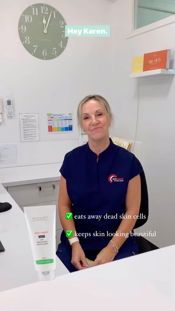 Allmedic Skin Repair: a versatile solution that rejuvenates rough, dry skin, enhances cell turnover for a youthful complexion, and effectively manages oily, acne-prone skin, doubling as a mask for comprehensive skin resurfacing treatment. Suitable for any skin condition.